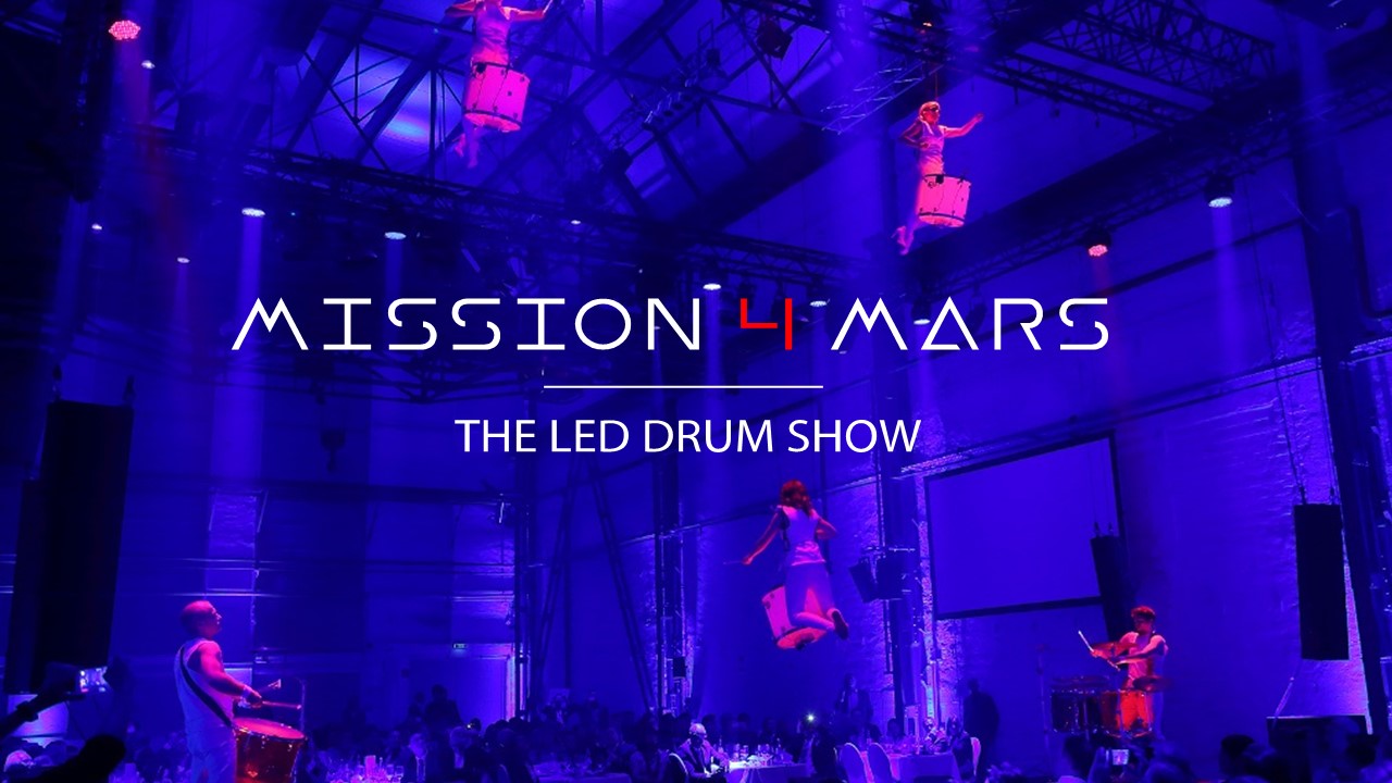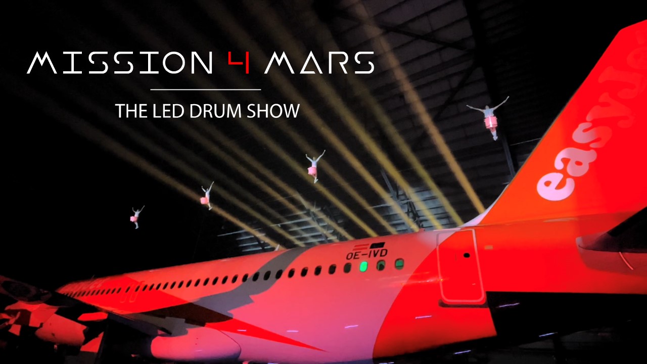 Wir, die Flying Drummer, fliegen für Sie! In schwindelerregenden Höhen, unter Hallendecken, an Fassaden oder an Kränen performen wir unsere eigens dafür komponierten Drum-Grooves synchron und auschoreographiert. Ein unvergessliches optisch als auch akustisches Erlebnis für jedes Business-Event. Der Percussion-Weltrekordhalter und international bekannte Performance Künstler sorgen für eine 100% Werbewirksamkeit. //mission4mars, die viel Flieger!